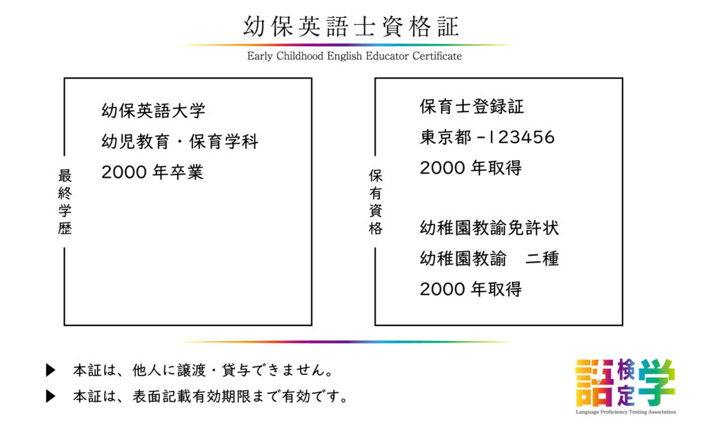 幼保英語士資格証(幼保英語検定)
